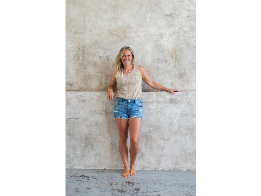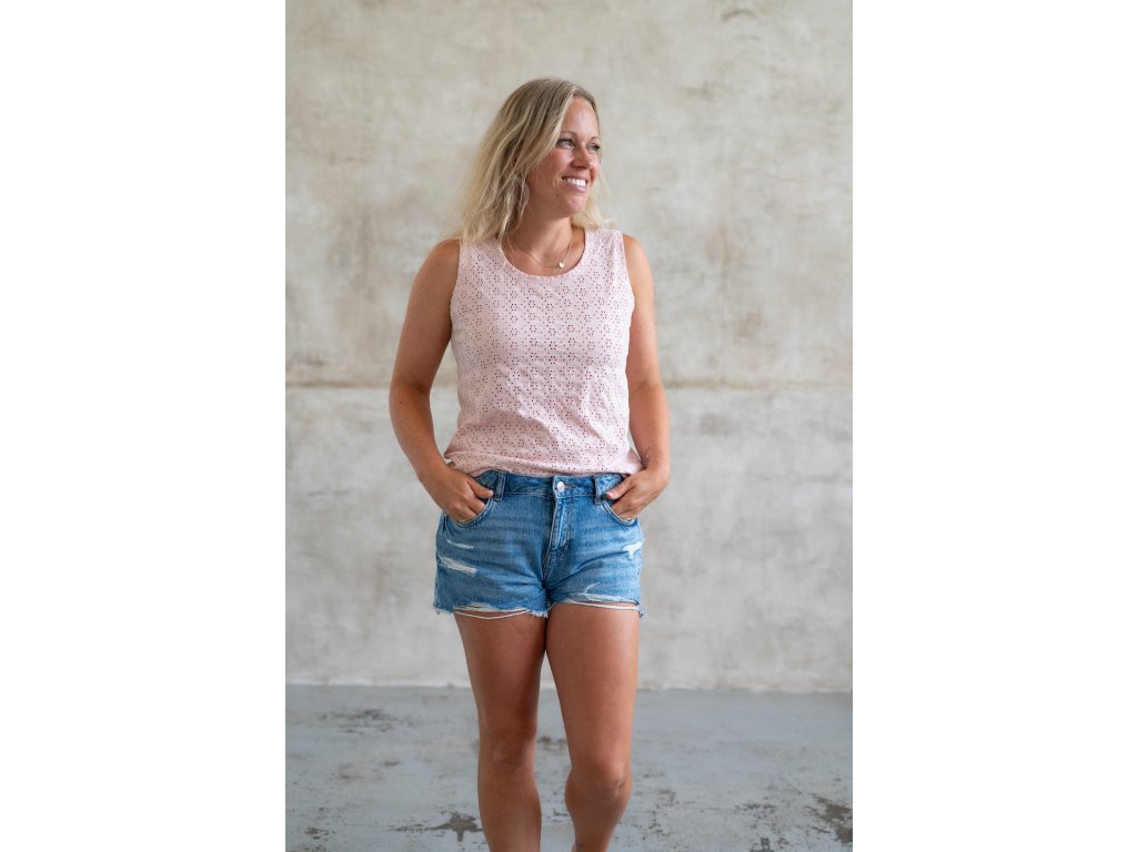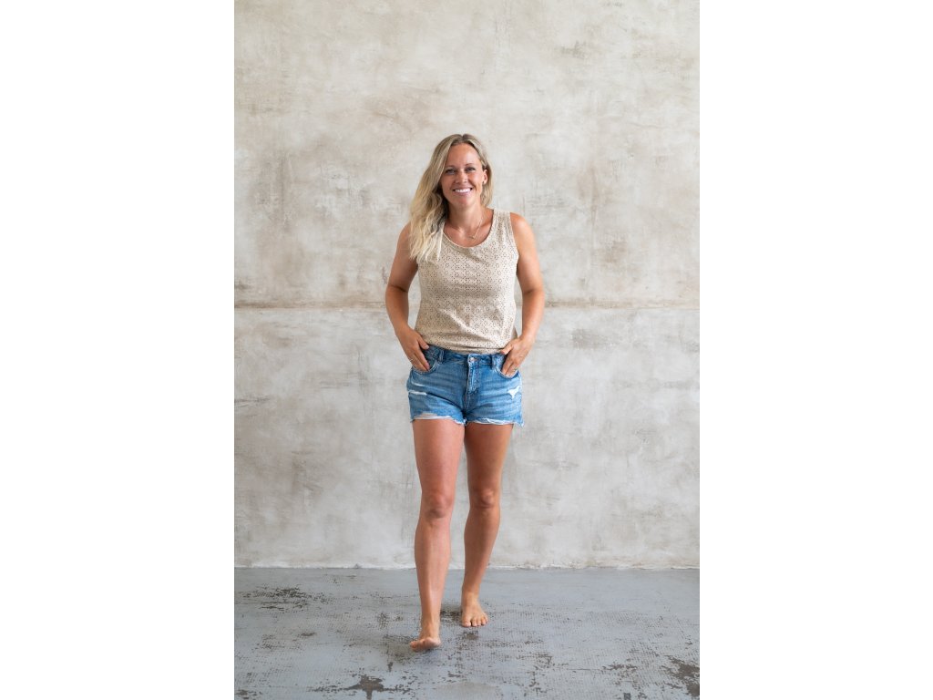 Volnočasové tílko z madeirového úpletu, které se hodí pro každou příležitost. Je vhodné během teplejších měsíců.