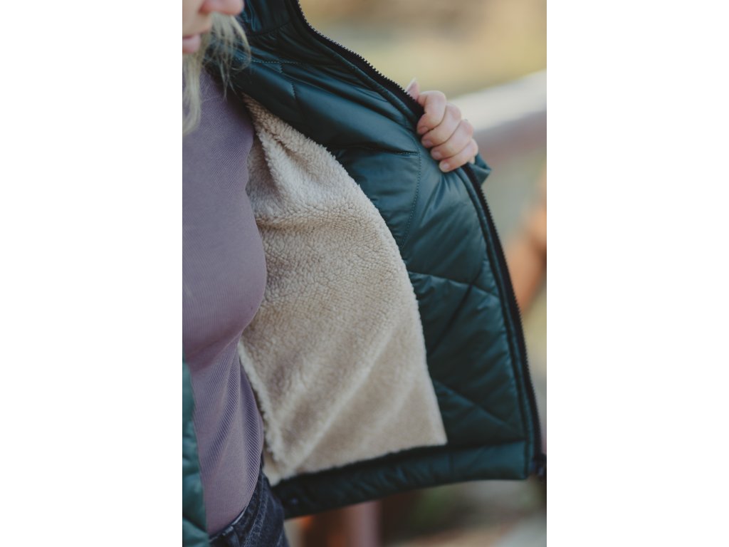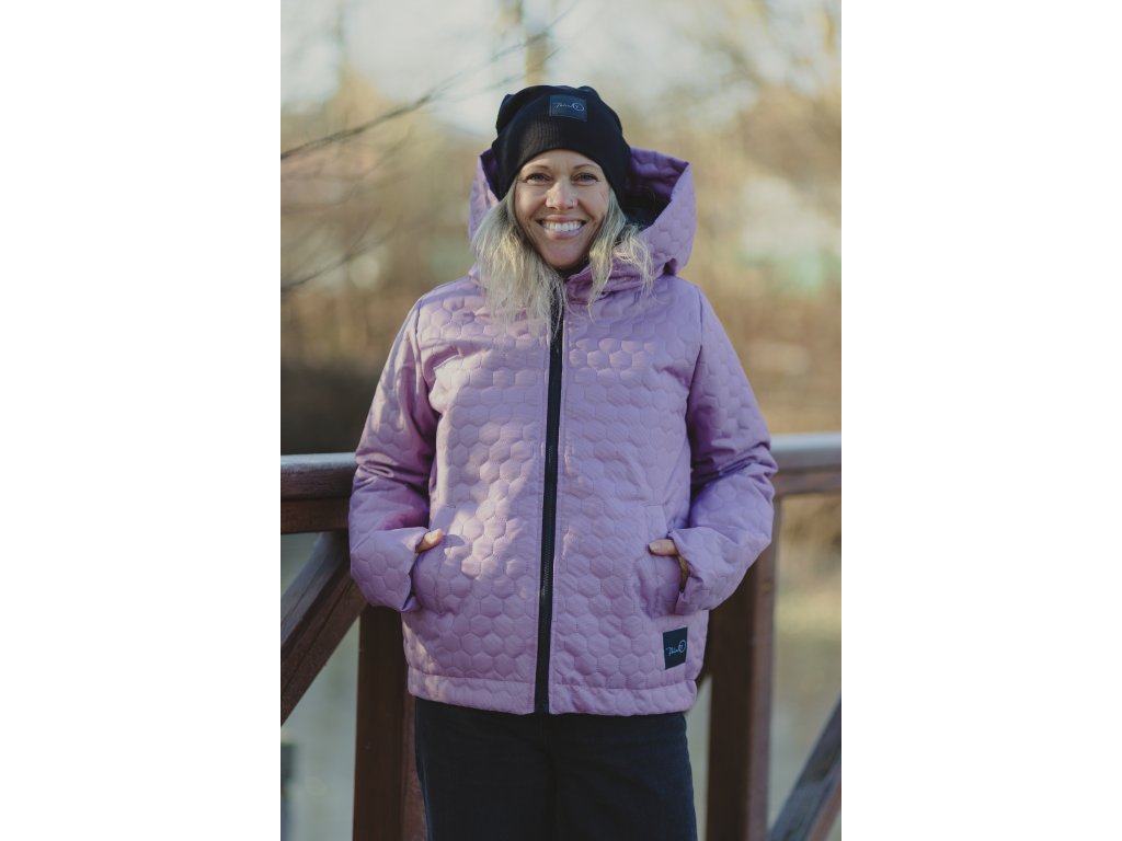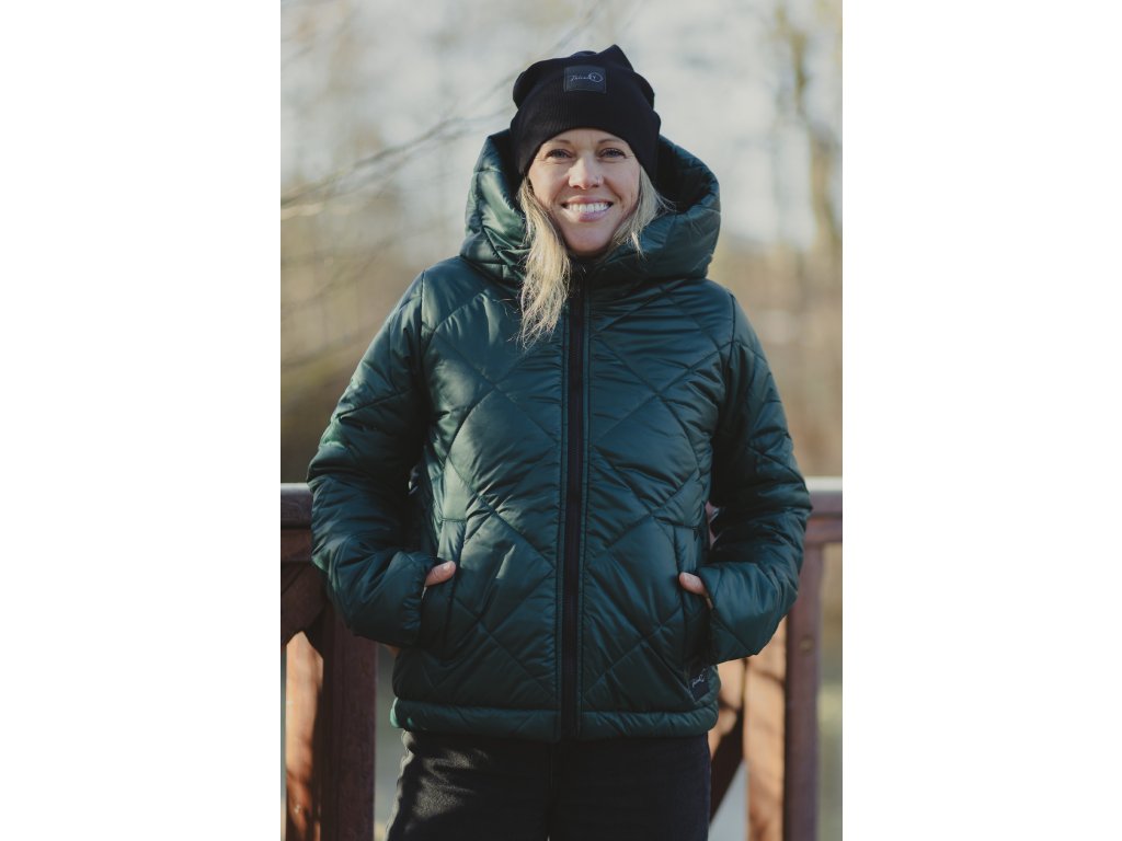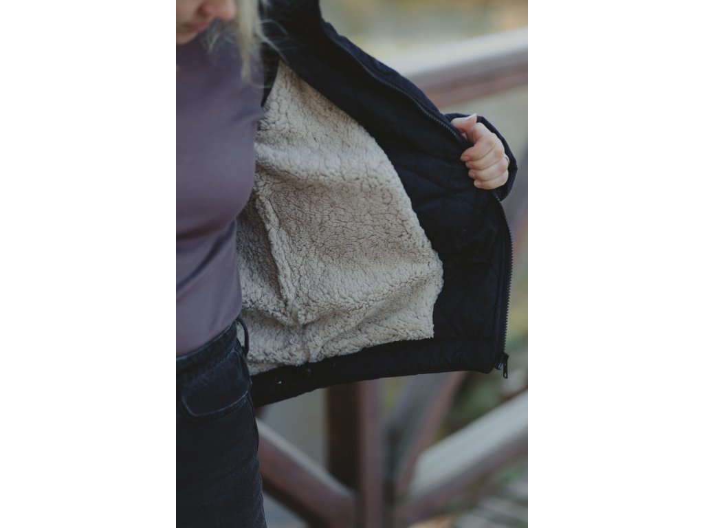 Dámská prošívaná bunda je stylovým a praktickým kouskem na celou zimu. Moderní prošívání v kombinaci s příjemným, na dotek měkkým materiálem, zaručují maximální pohodlí a tepelný komfort. Bunda se zapíná na zip, zadní díl je lehce prodloužený pro lepší ochranu zad a velká kapuce je nejen efektní, ale i velmi praktická. Uvnitř je po celé přední i zadní části všitý hřejivý beránek, který krásně zahřeje i v chladných dnech. Každé bundě věnujeme péči – její ušití trvá více než 7 hodin. Hodí se na každodenní nošení i volnočasové aktivity.