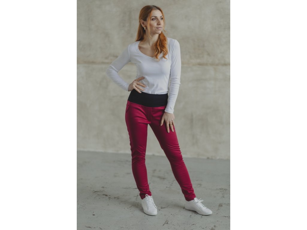 Bye bye, nepohodlné softshellky. Ultra pohodlné, pružné a nemačkavé. Bez zipu, dvě drobné kapsy na maličkosti, vysoký náplet v pase a rafinovaně všitá guma, aby Vás nic netlačilo.