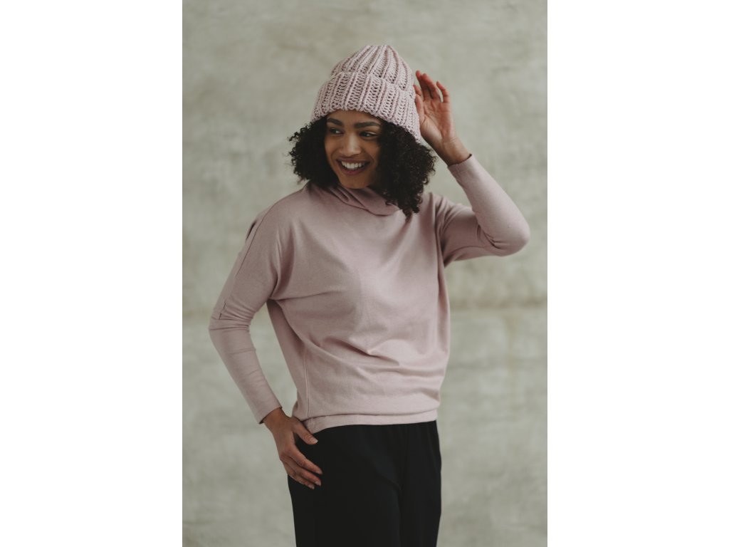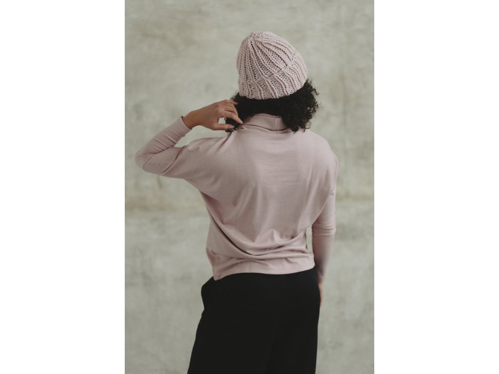 Tento model je navržen ve volném, avšak elegantním oversized střihu. U krku se nachází roláček.  Použili jsme elastický a příjemný materiál.
